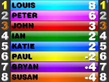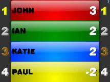 Once the player buzz in to a question or challenge, his score change colour. Then it is automatically sorted depending on whether his answer is right or wrong.